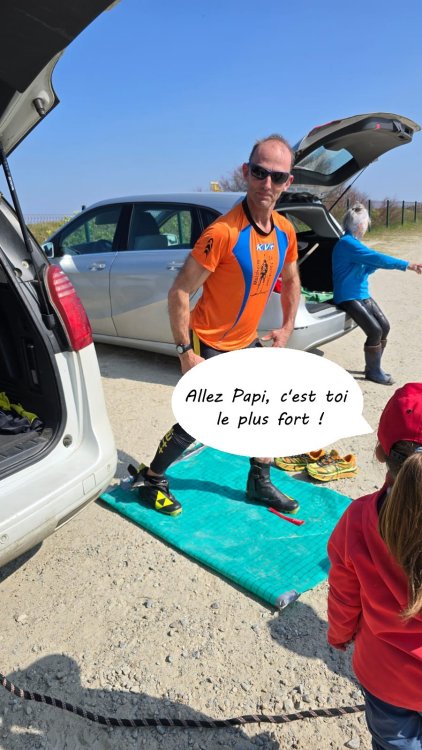 Hélas renversé par une voiture il y a un peu plus de trois semaines, commotionné et sérieusement contusionné, Nicolas se voyait mal parti pour prendre le départ... Et pourtant, ce 21 mars, il était bien présent au rendez-vous, supporté par son épouse, ses enfants, et ses petits-enfants. Même le chien était du voyage !